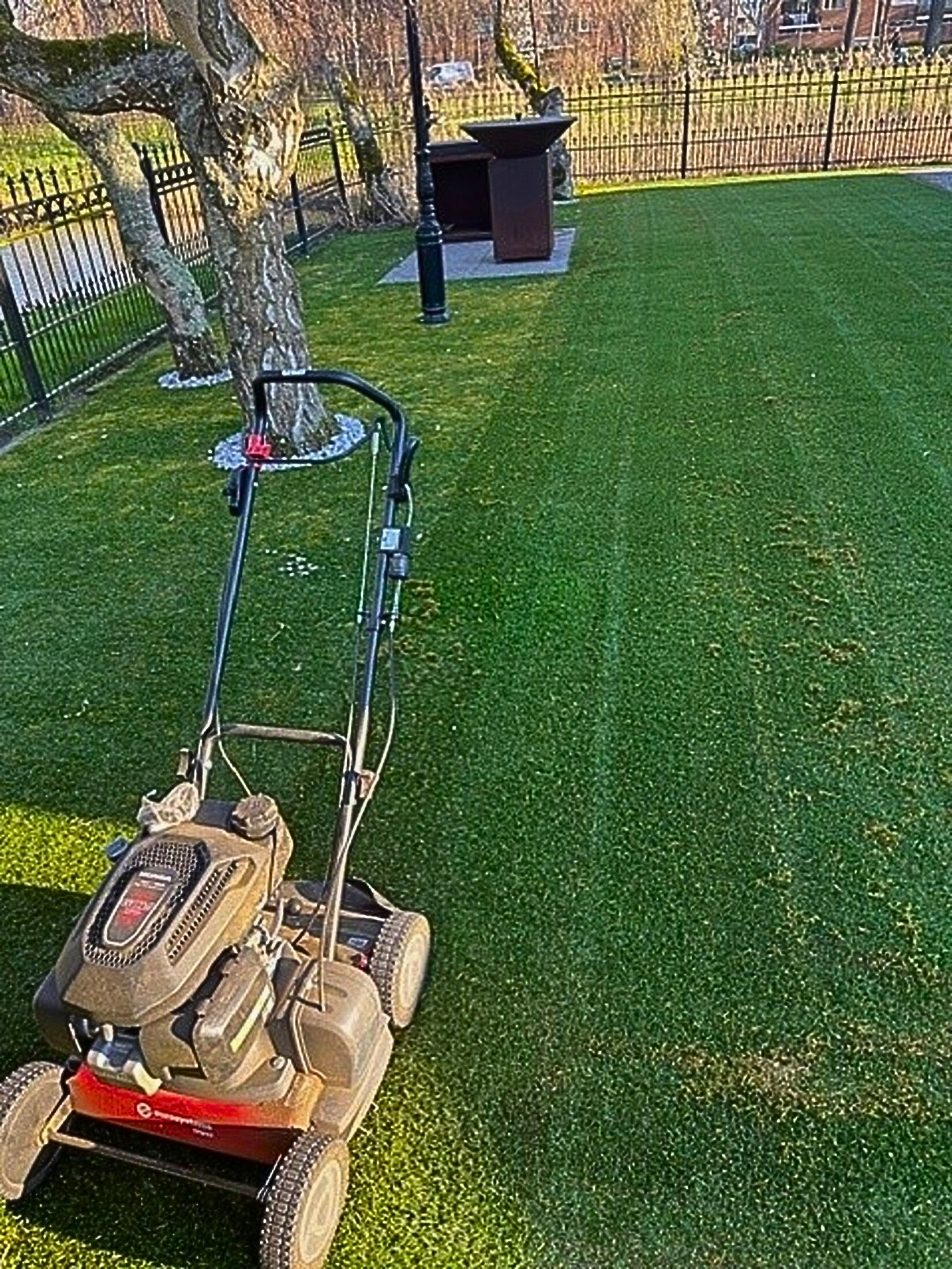 Voor het reinigen van kunstgras is de voorzien van kleine pinnen. Door de roterende beweging harken de pinnen het vuil, mos en onkruid uit het kunstgras. Dit is vooral handig langs de randen of daar waar je met een grote machine niet bijkomt. De pinnen buigen mee, waardoor schade aan het kunstgras wordt voorkomen.